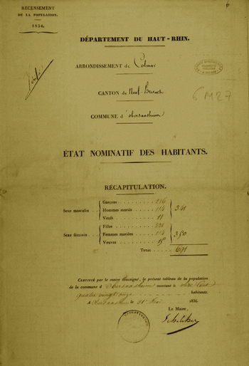 PREMIERES PAGES DU RECENSEMENT A OBERSAASHEIM EN 1836 (Source ADHR 6M27)